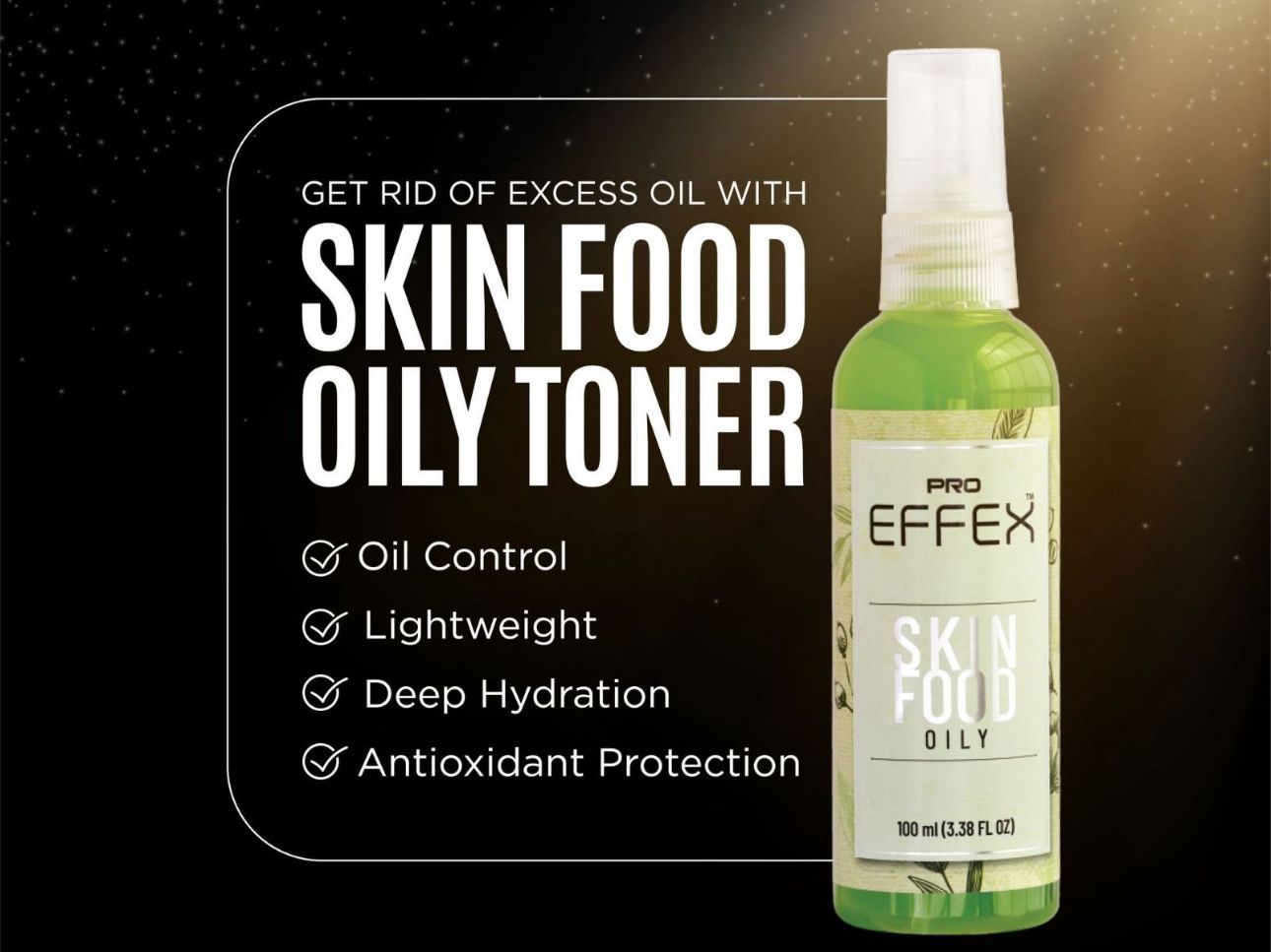 Pro Effex Skin Food Oily is a specially formulated toner for oily and combination skin types. It helps balance oil production, tighten pores, and provide hydration without leaving a greasy residue. This lightweight toner is packed with powerful ingredients to rejuvenate and clarify your skin, leaving it refreshed and radiant.
